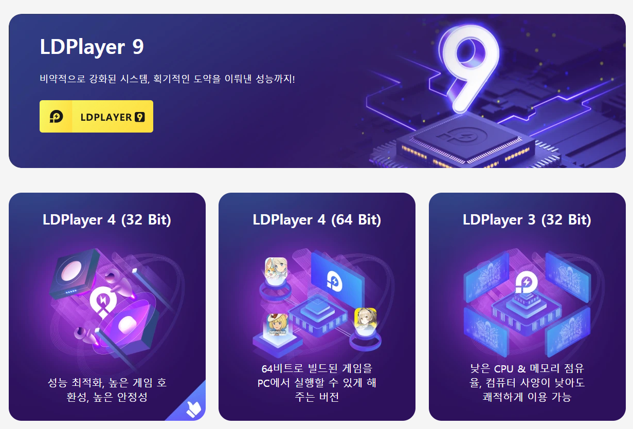 그럼 위처럼 총 4가지 버전의 LDPlayer를 보실수 있습니다.
