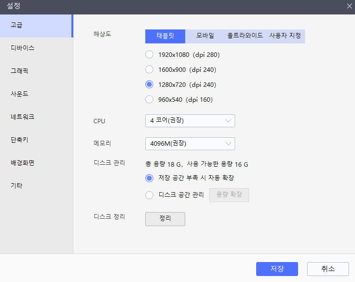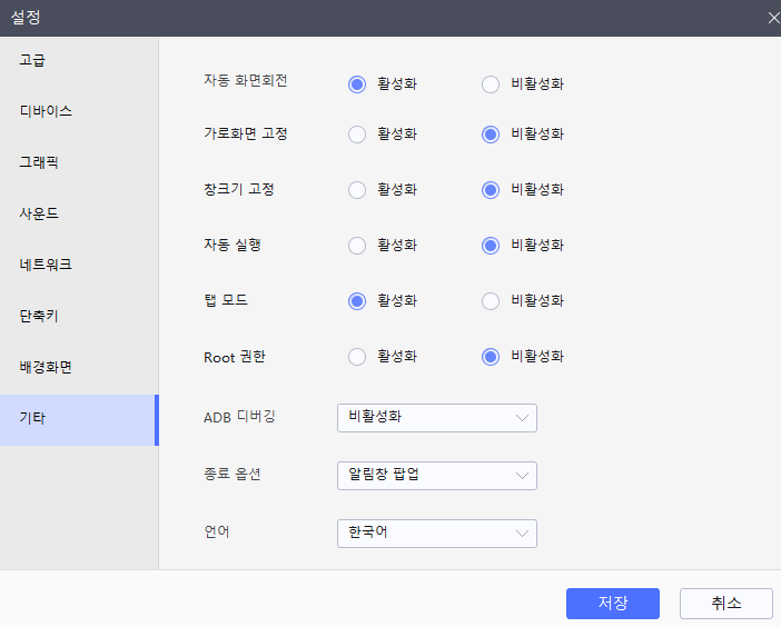 6. 단축키, 배경화면은 관계없구요, 앱플레이어 설정 - 기타 입니다.