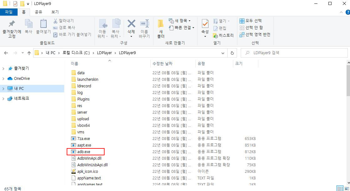 adb.exe파일을 그대로 복사해서 C드라이브 LD폴더에 넣어주었습니다.